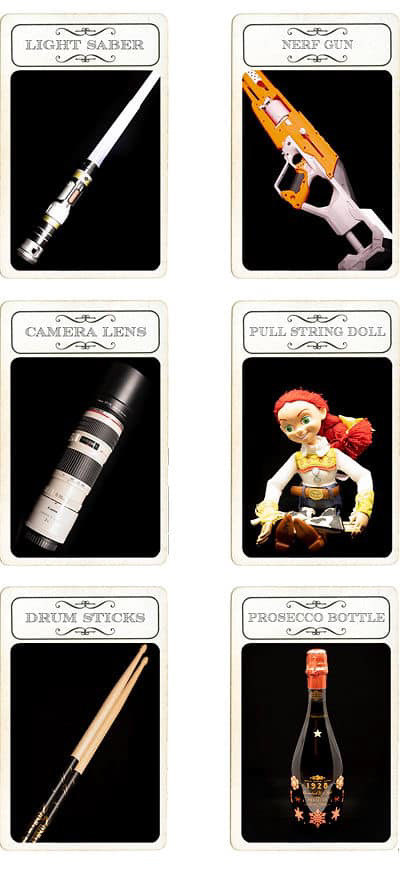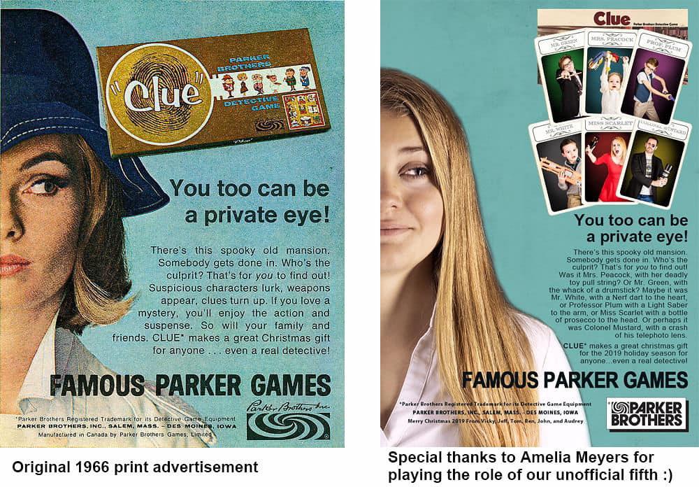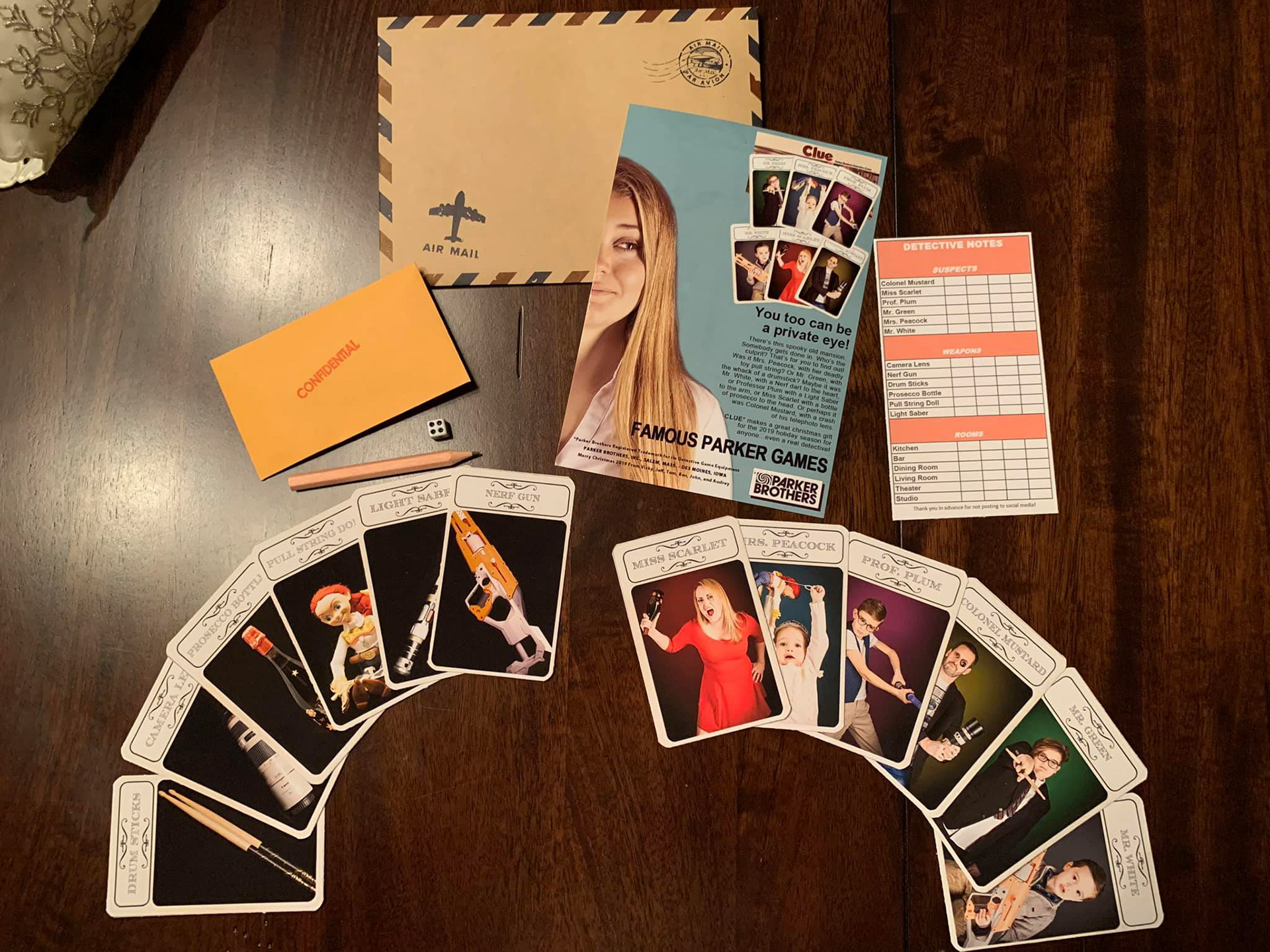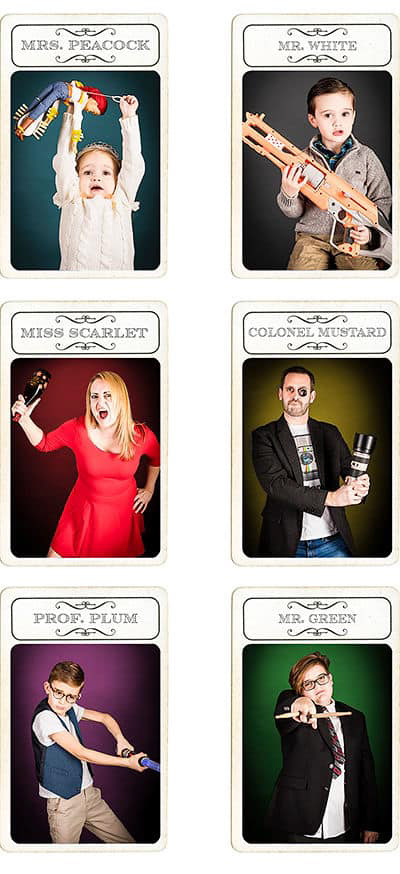 We turned our family into the board game Clue, based on vintage original card designs and advertisements. We might have slightly underestimated the work effort at the start - for 82 cards, over 1100 prints.
