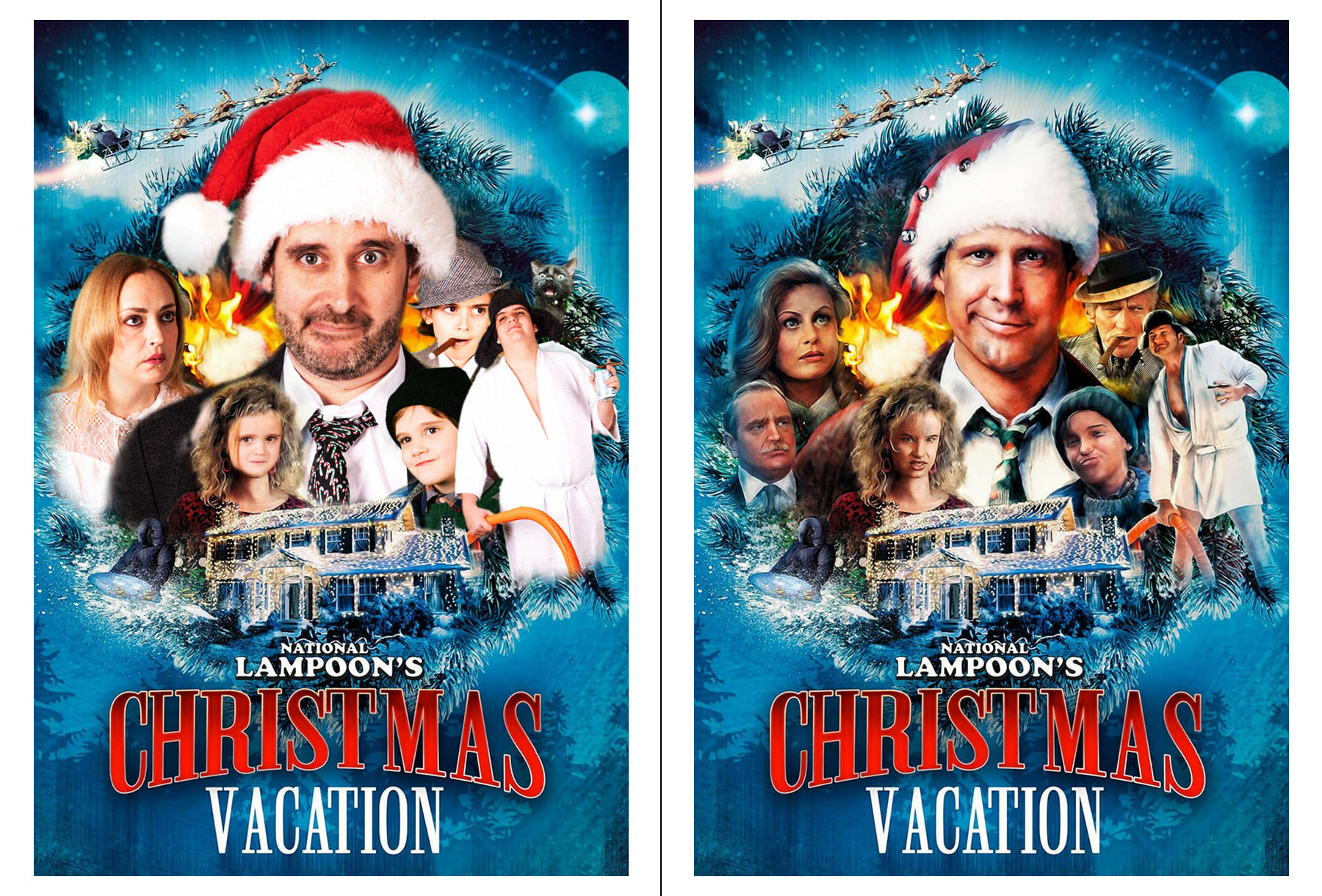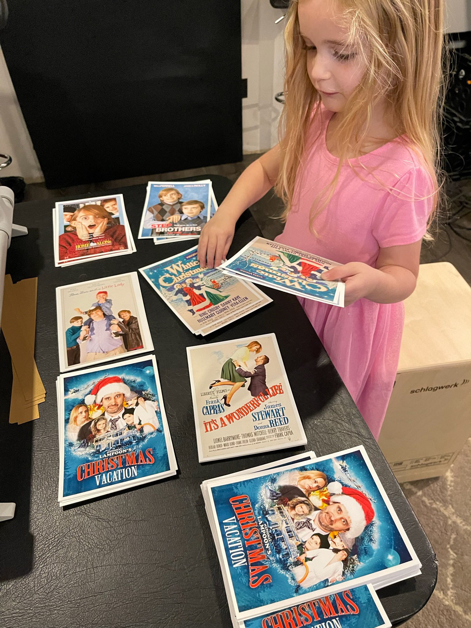 2021 was all about the movies. We recreated 11 classic movie poster shot-for-shot (presented side by side here), and shipped them out with a standing foldable frame included. We also added an extra 12th poster, for a fake movie called "No Barking" starring John's stuffed animals. There was a phone number on that card that plays an audio trailer for the movie, and has a voicemail prompt at the end! We received some great messages that year. The original audio is in the youtube link at the end.